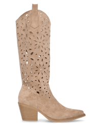 SHELBY - sandali beige con pietre colorate e cinturini fino a sotto il ginocchio
