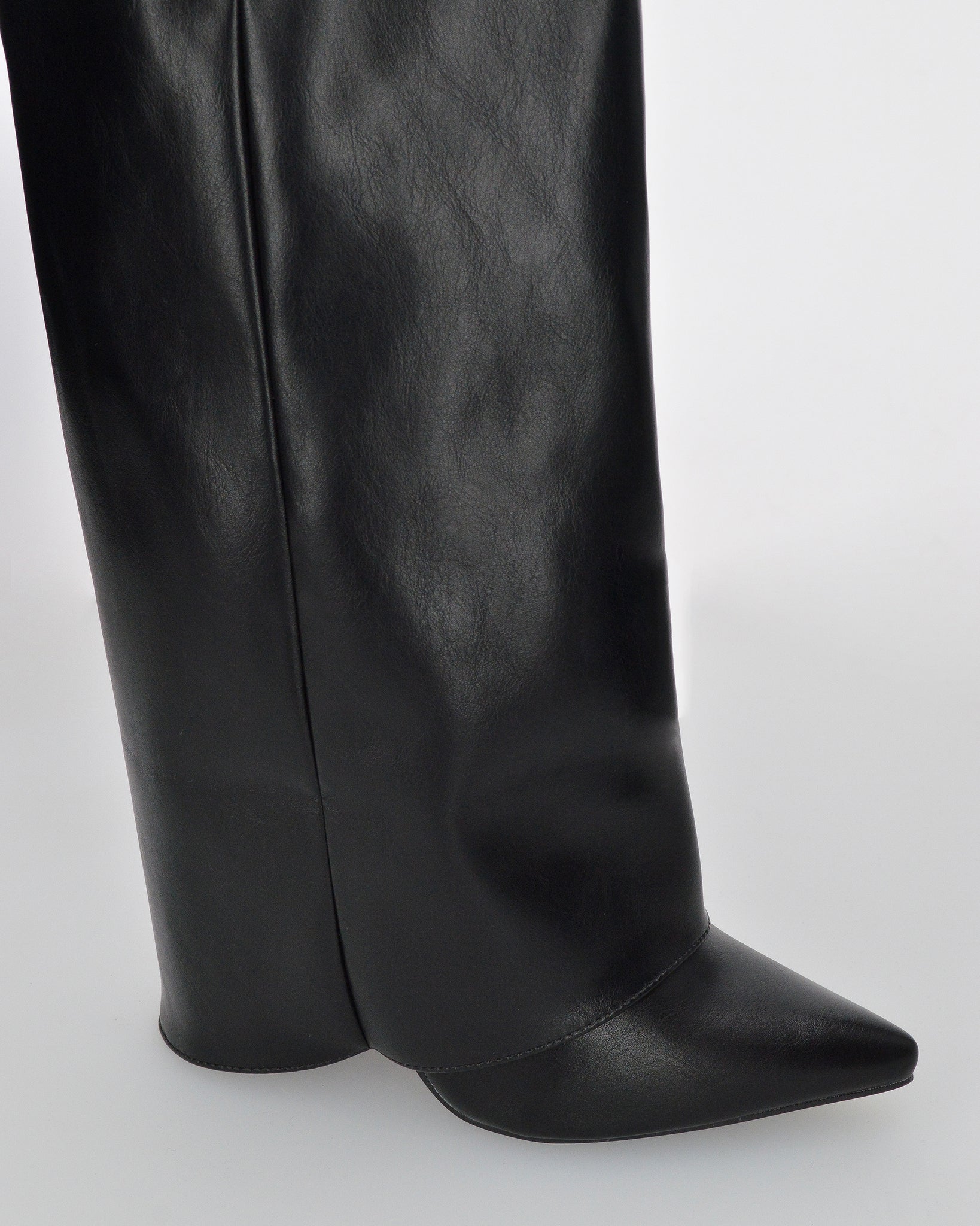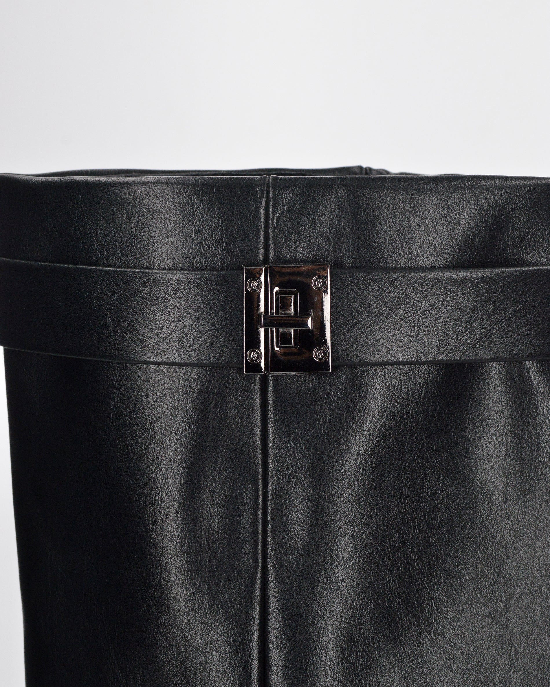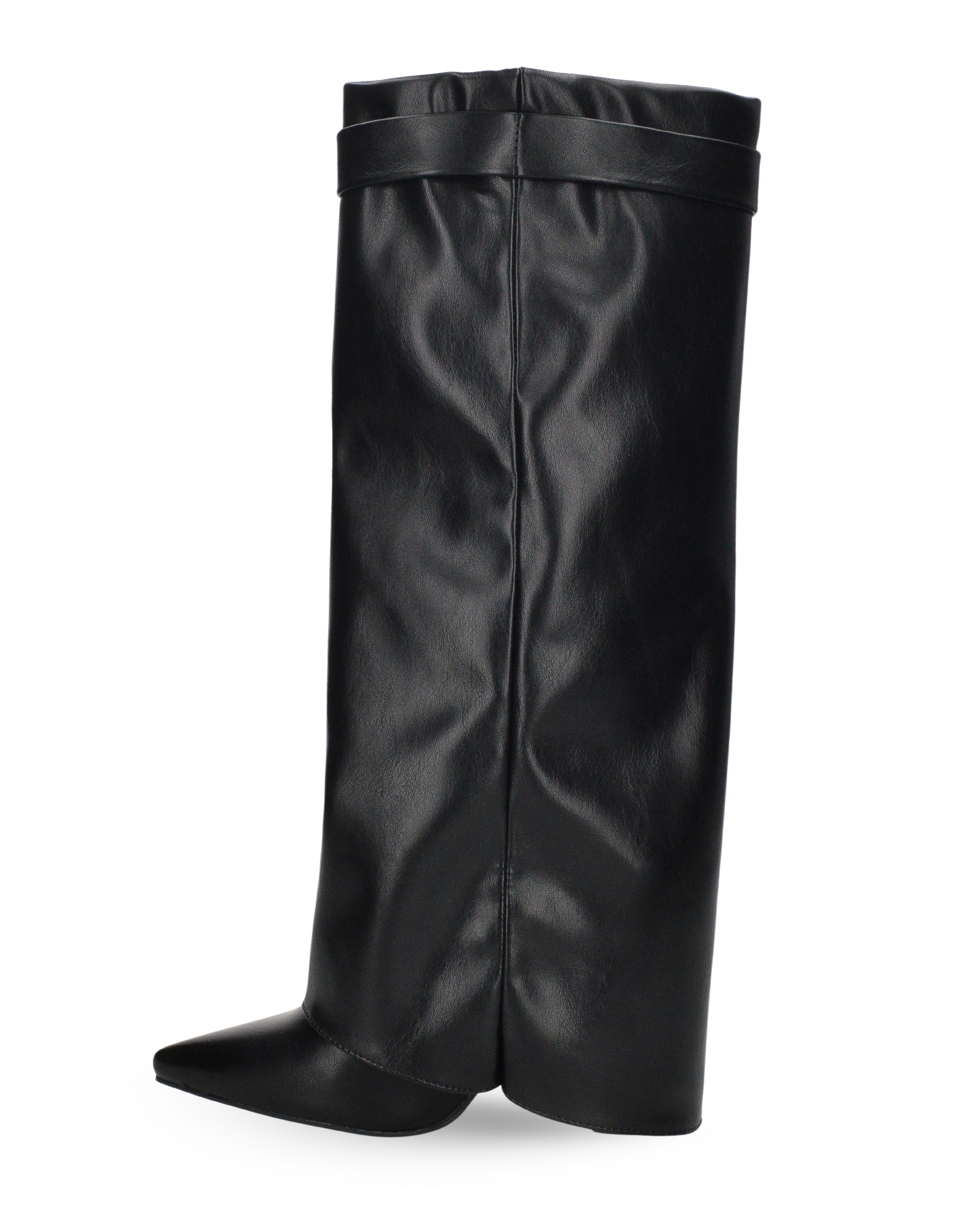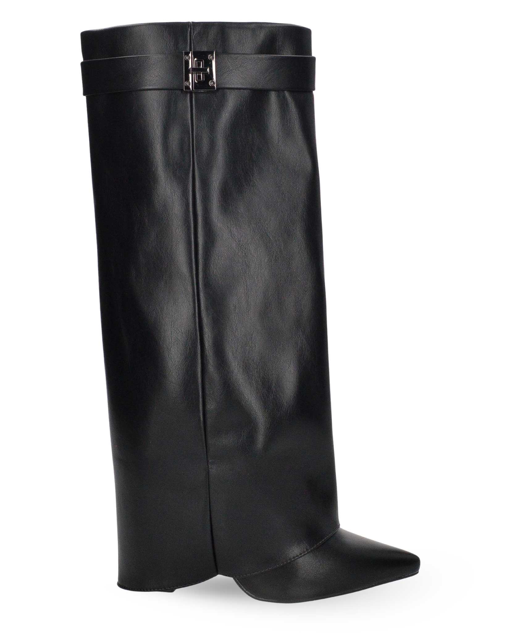 DALY - Stivale alto rigido con tacco nascosto in ecopelle nera e dettaglio chiusura argentata