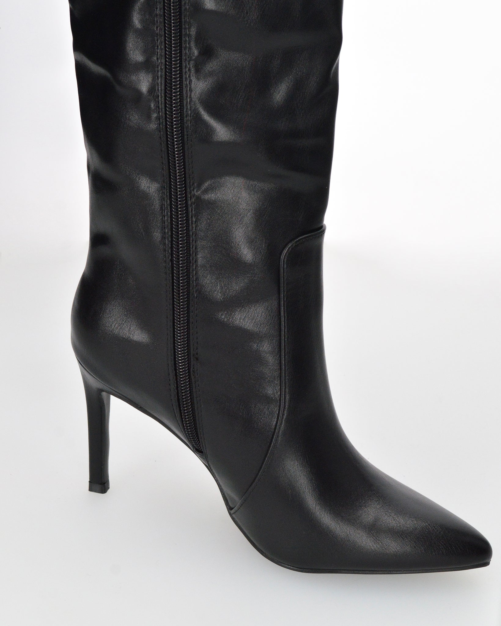 ZOFIA - Stivale alto sotto al ginocchio in ecopelle nero con tacco stiletto