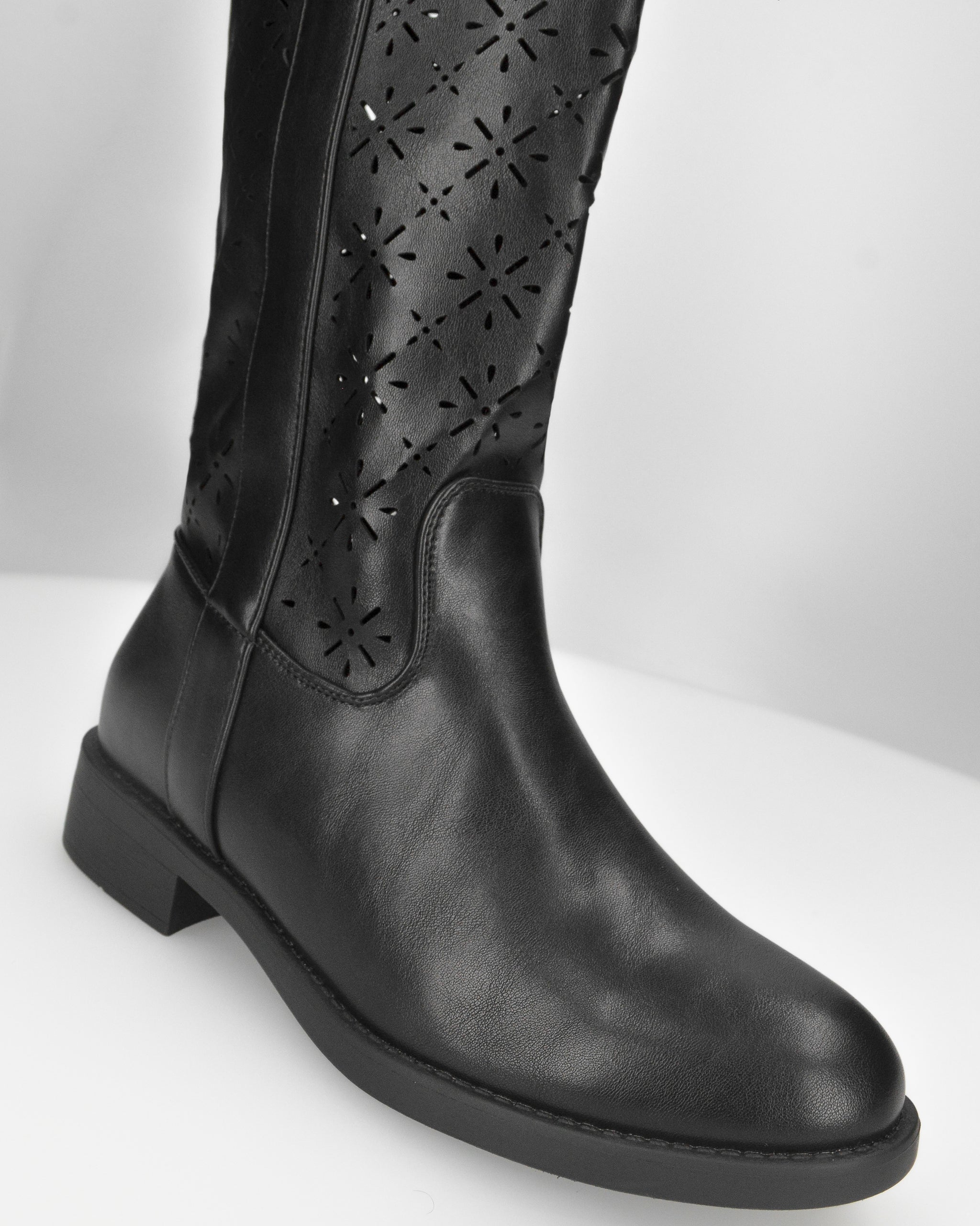 OLGA - stivali alti neri traforati con chiusura zip laterale