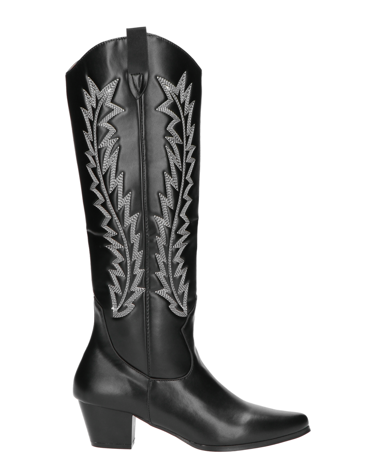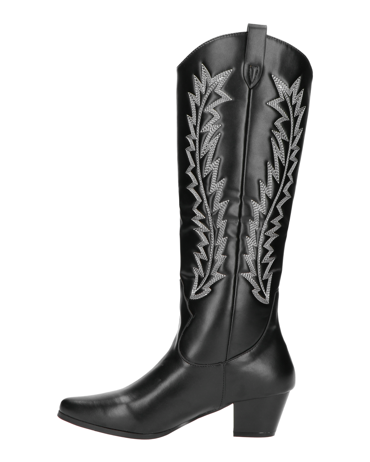 LUCITA - camperos alti in nero con disegni ricamati bianchi