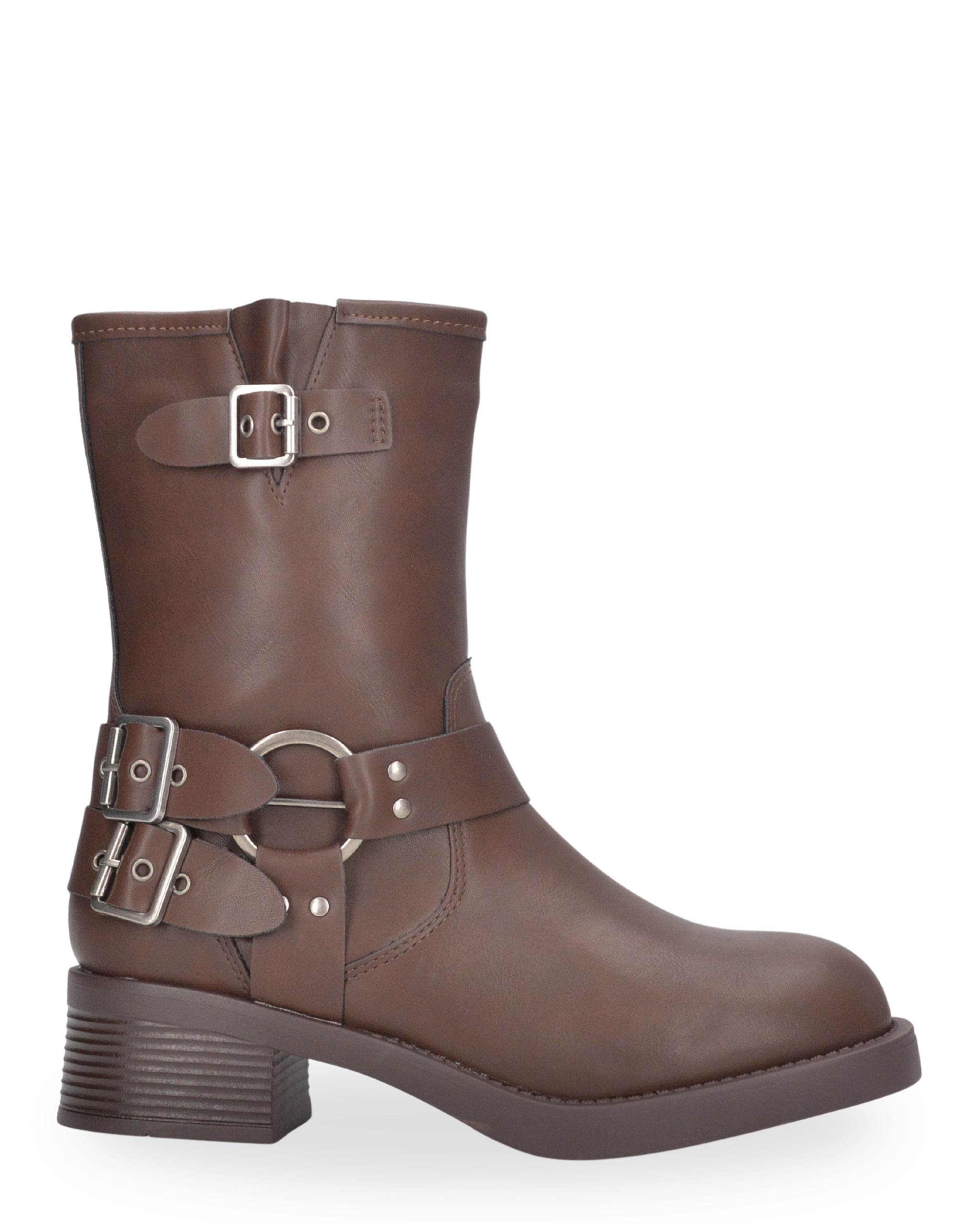 KOSTA - stivaletto biker marrone con cerniera laterale