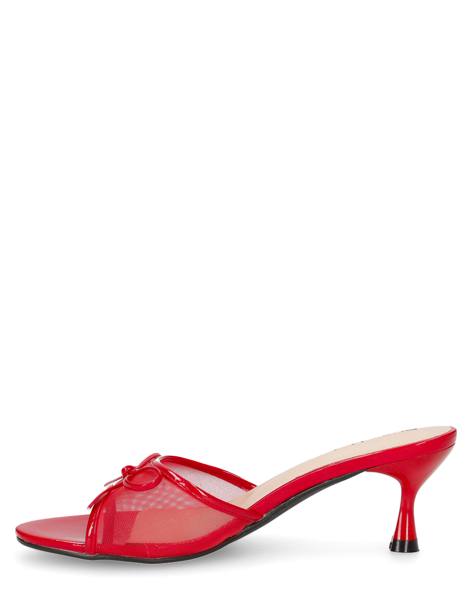 DZESIKA - sabot rossi in vernice e mesh con tacco kitten e fiocco