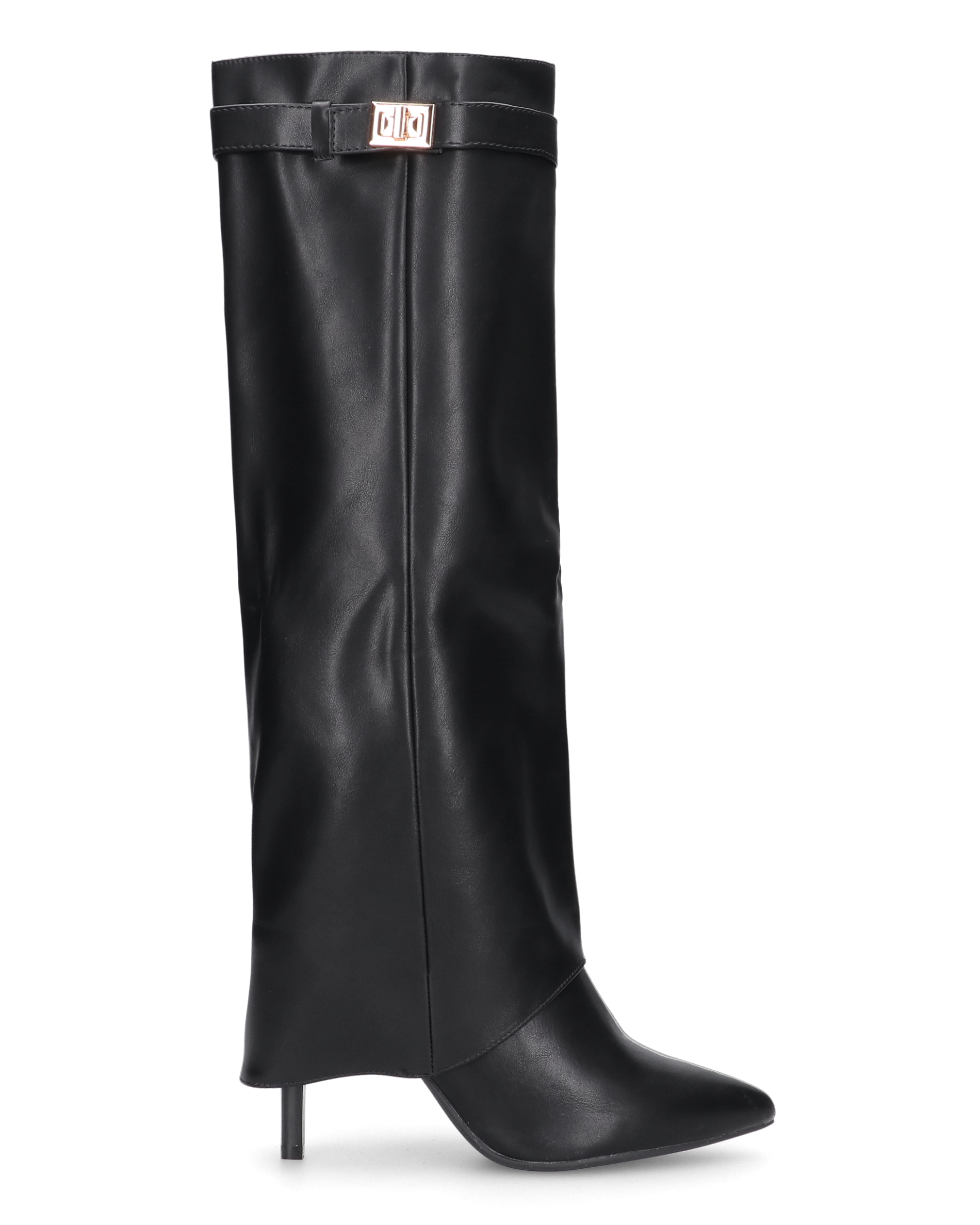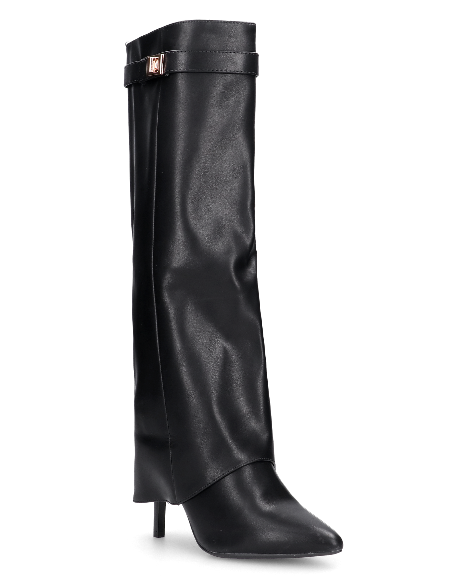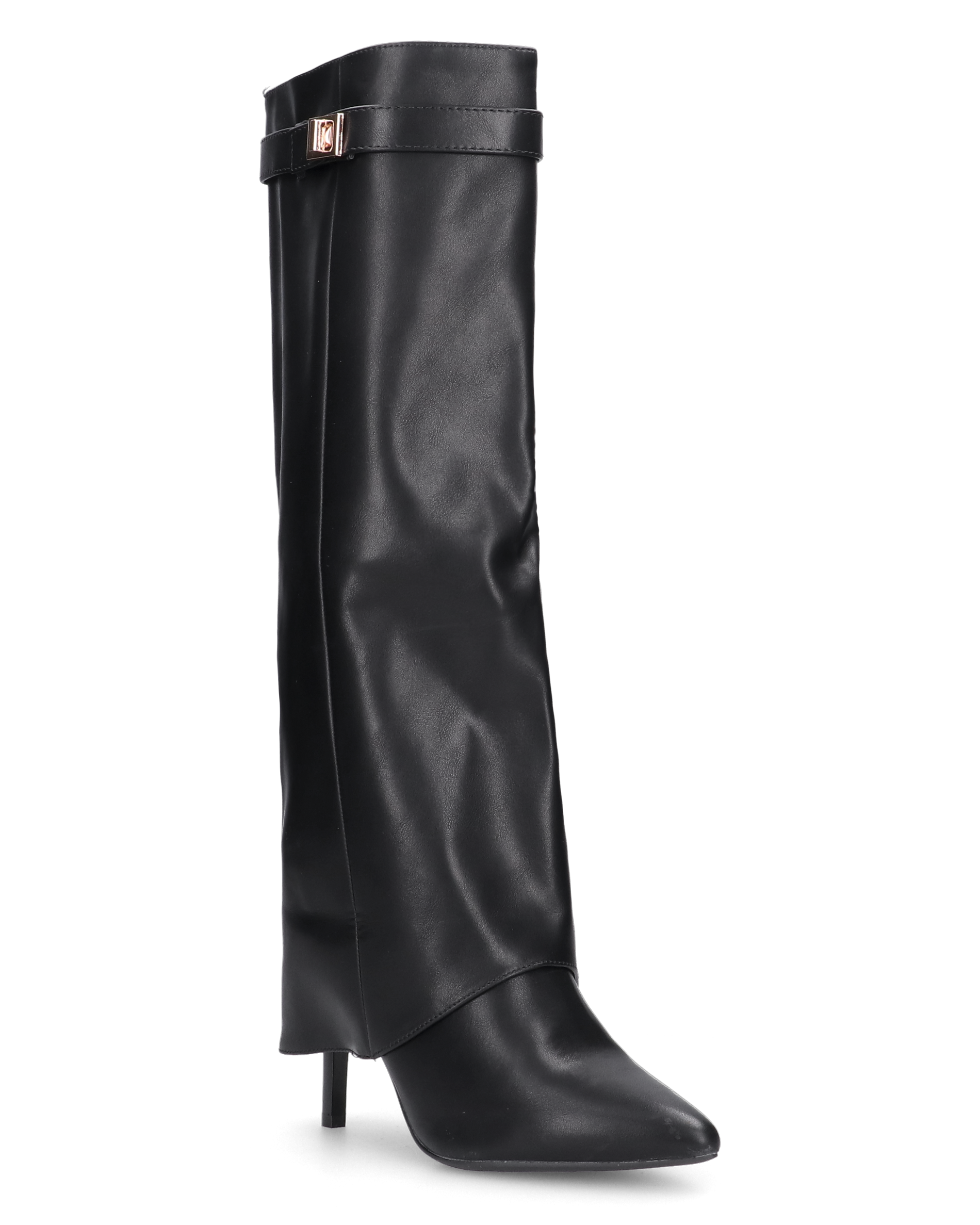 BEA - stivali alti neri con risvolto e tacchi alti a spillo