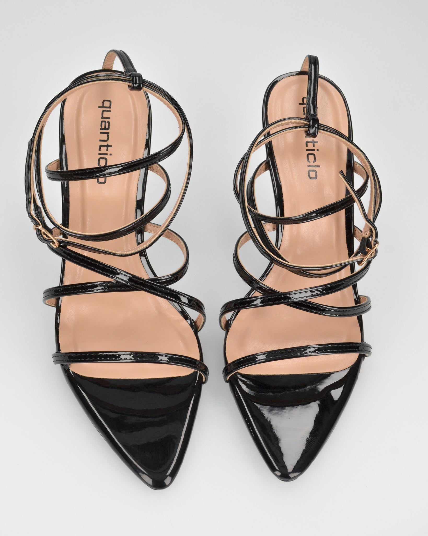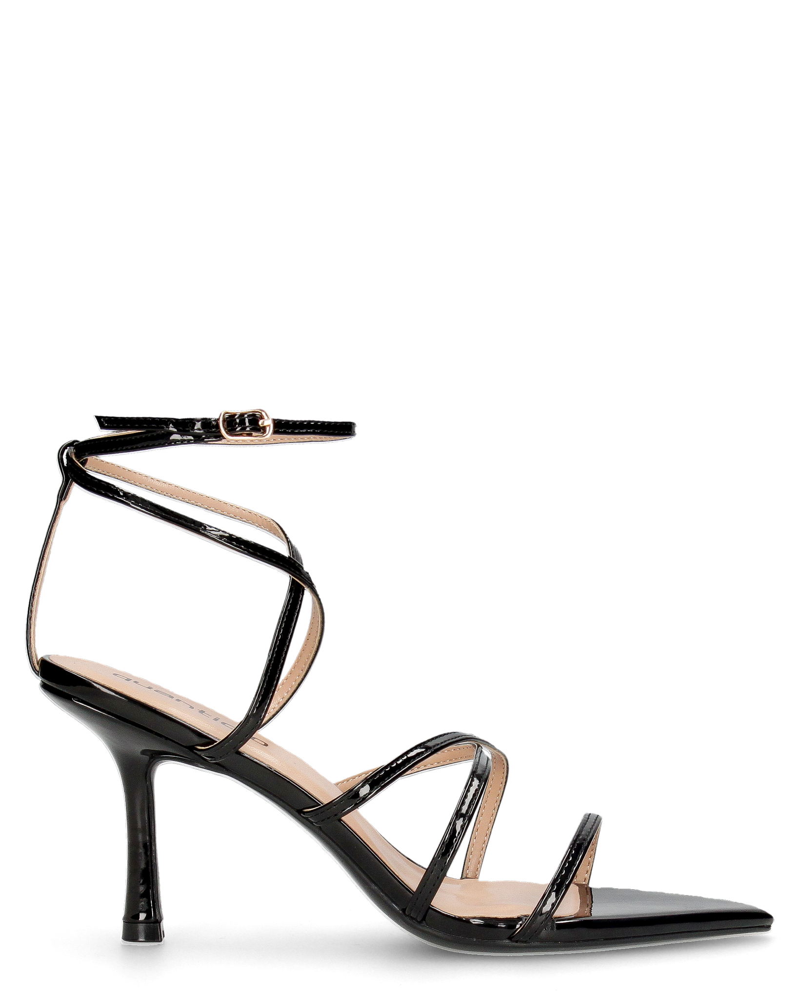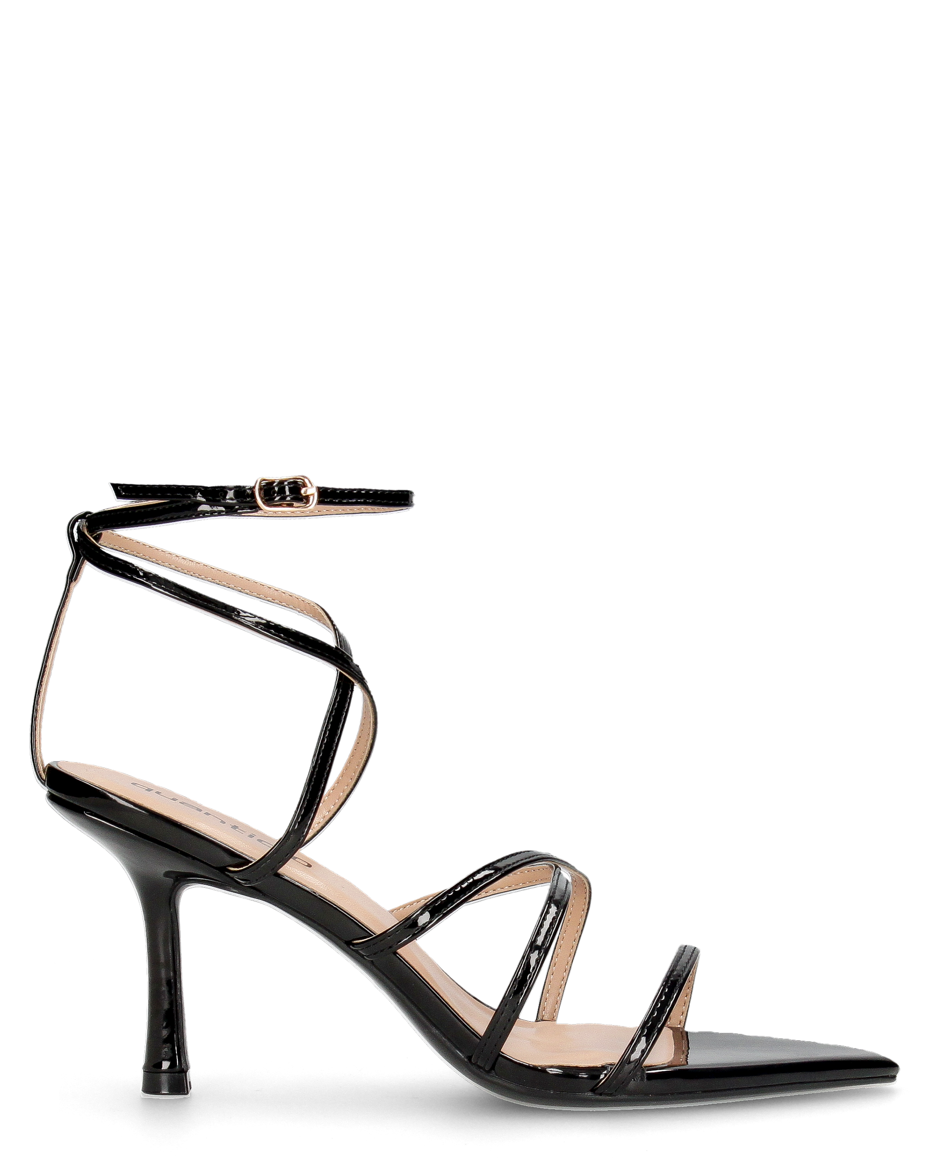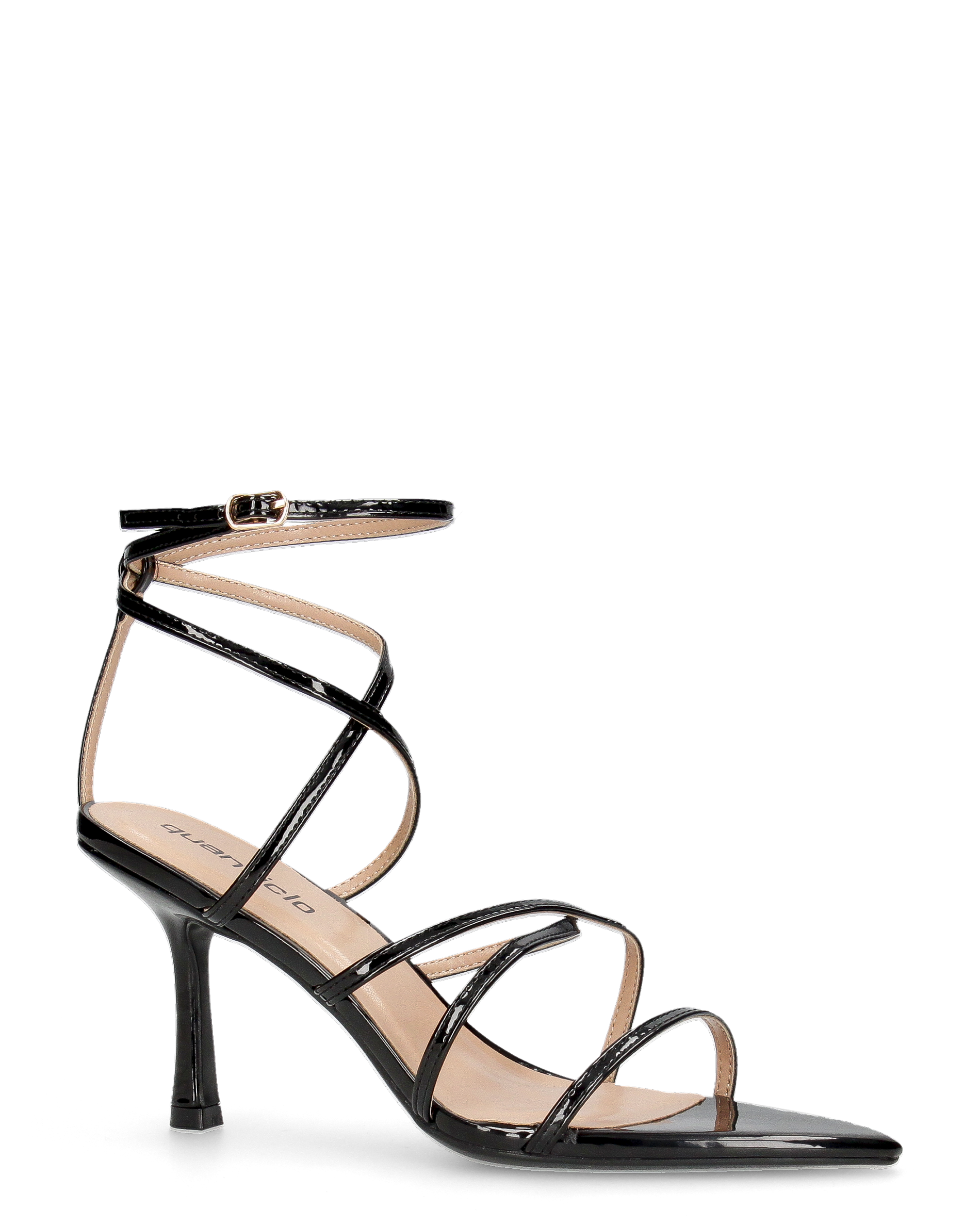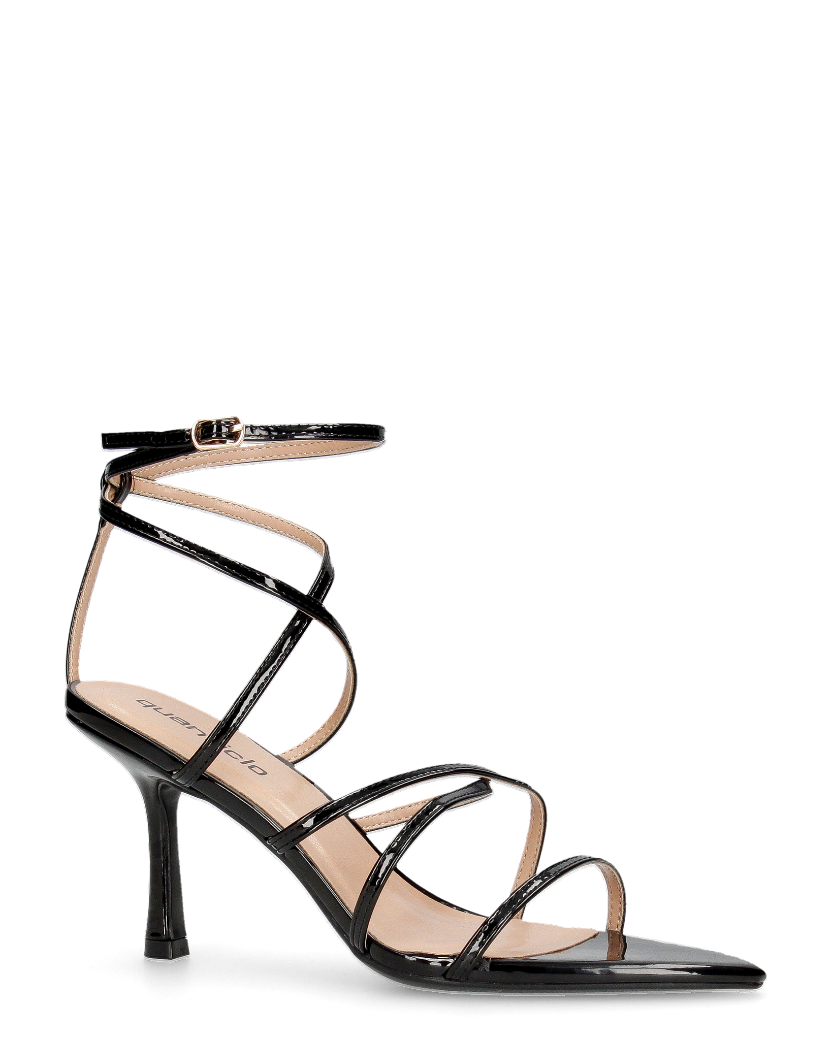 HELGA - sandali neri lucidi con tacco alto a spillo e listini