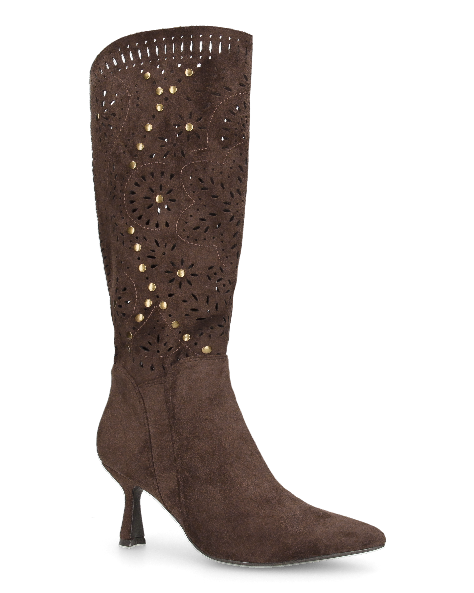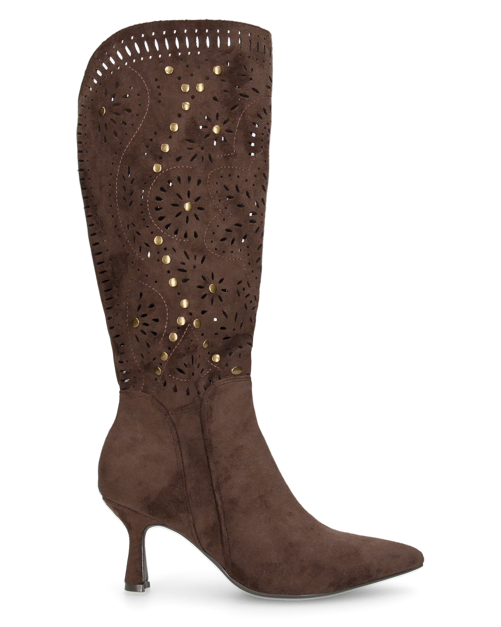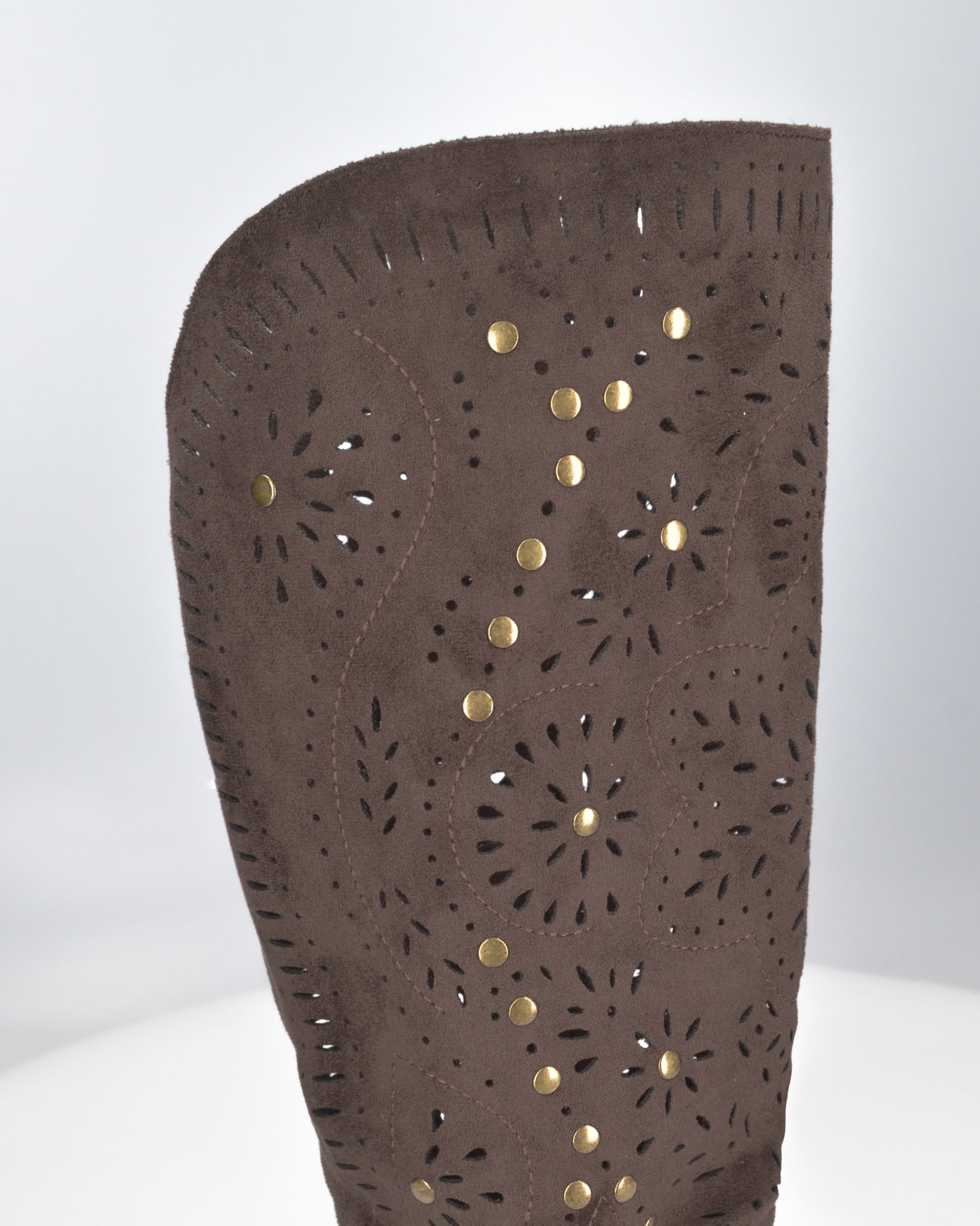 ORTHE - stivali marroni sotto al ginocchio traforati con borchie dorate