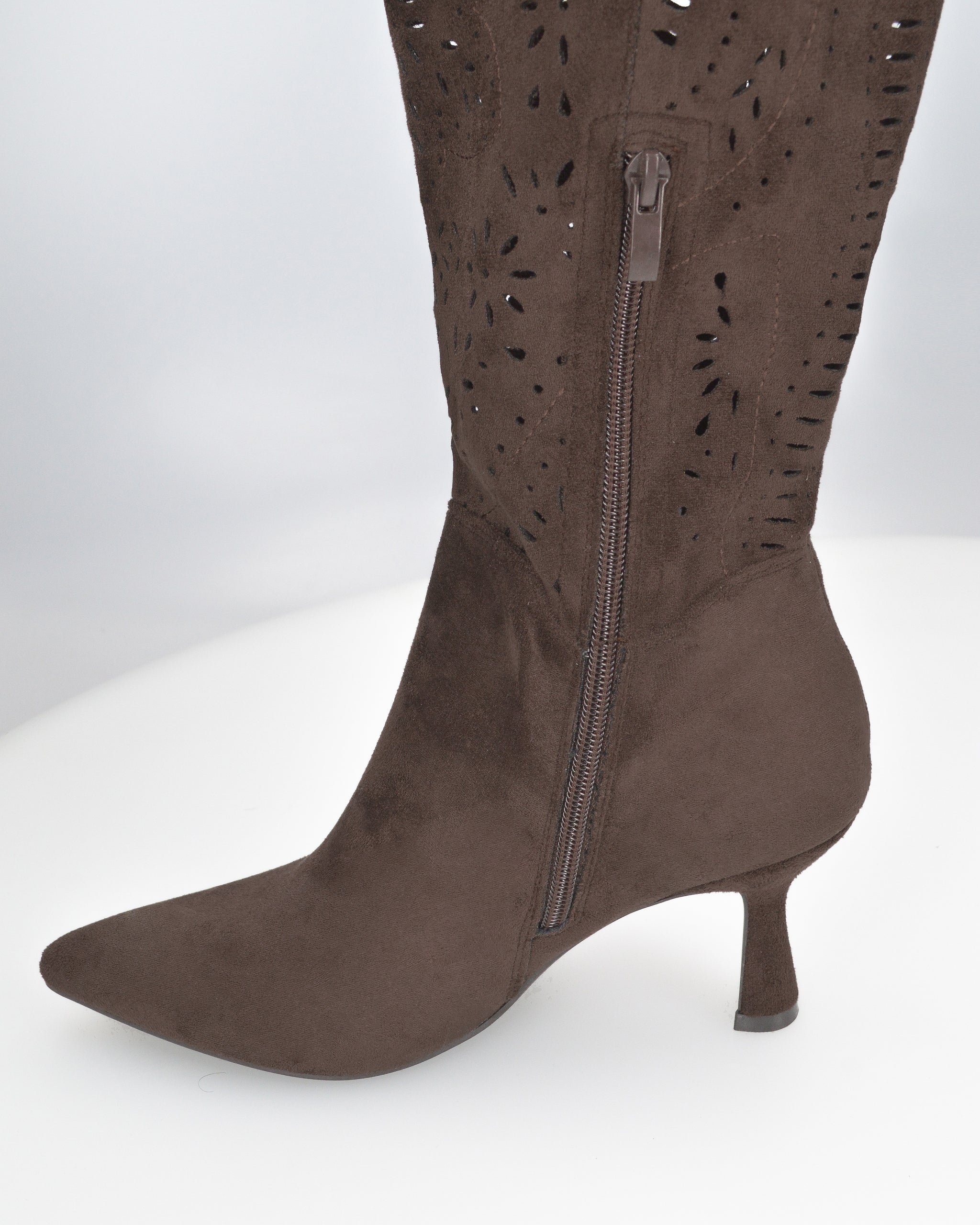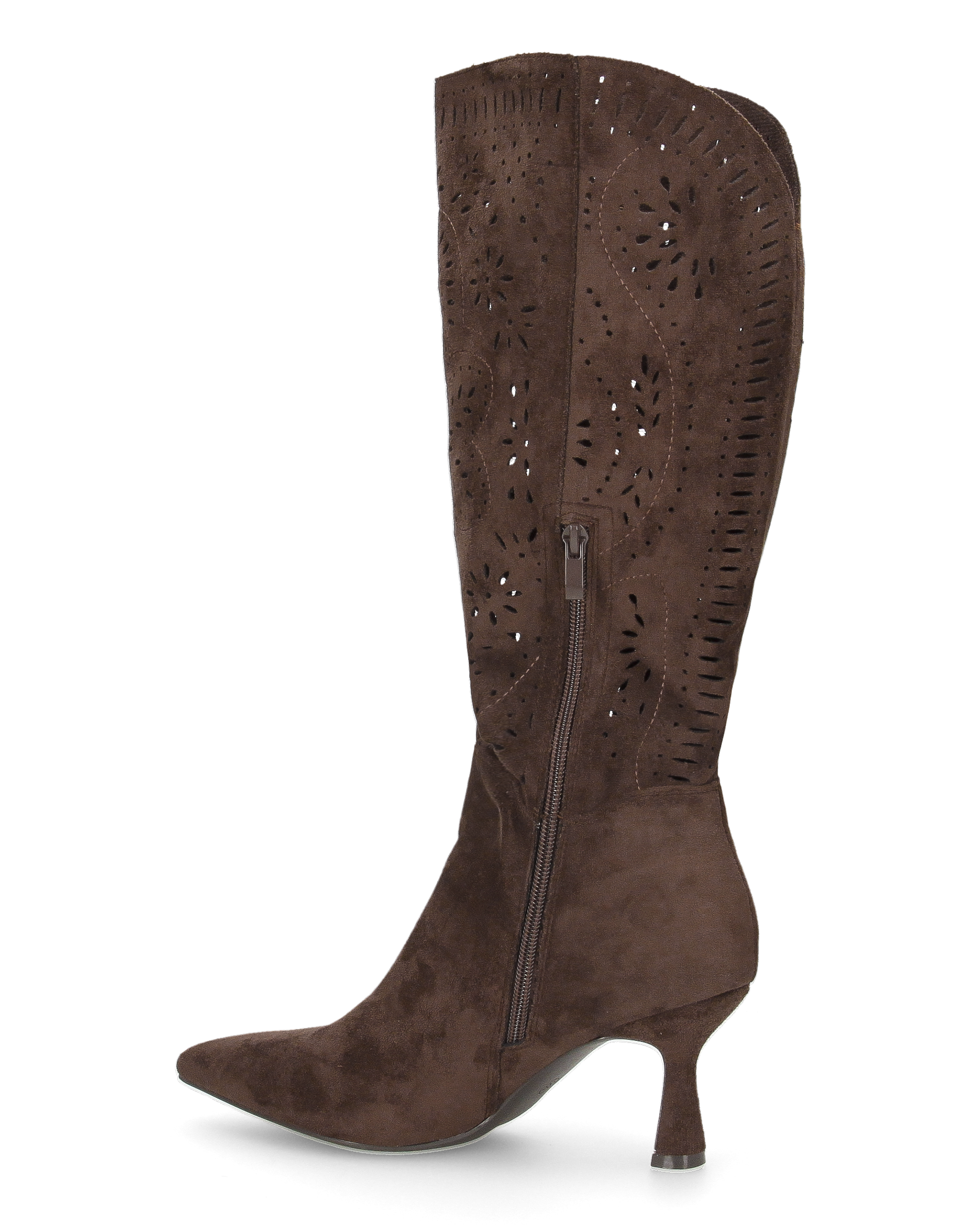 Lo stivale ORTHE è l'incontro perfetto tra l'anima selvaggia del deserto e il glamour della città. Questo non è un semplice stivale, ma un accessorio ricco di dettagli preziosi: la raffinata lavorazione traforata lo rende leggero e traspirante, mentre la cascata di micro-borchie dorate aggiunge un tocco di luce sofisticata che eleva istantaneamente ogni outfit. Un pezzo "must-have" per chi ama lo stile boho-chic ricercato e grintoso.
