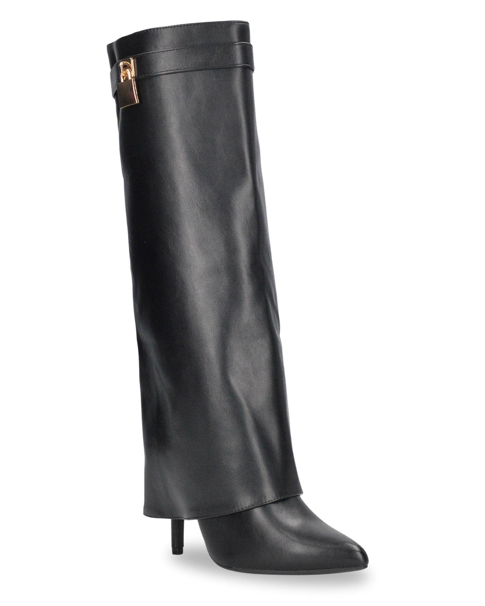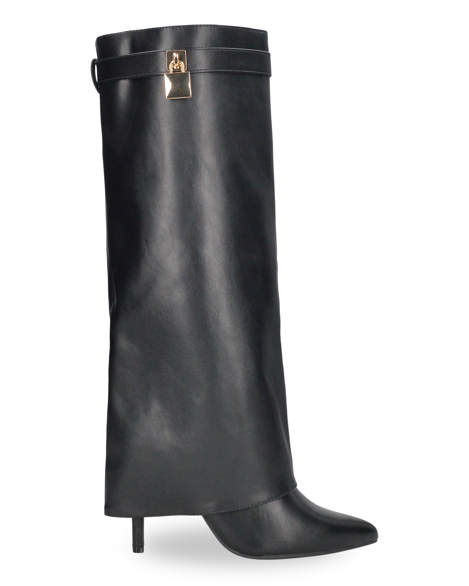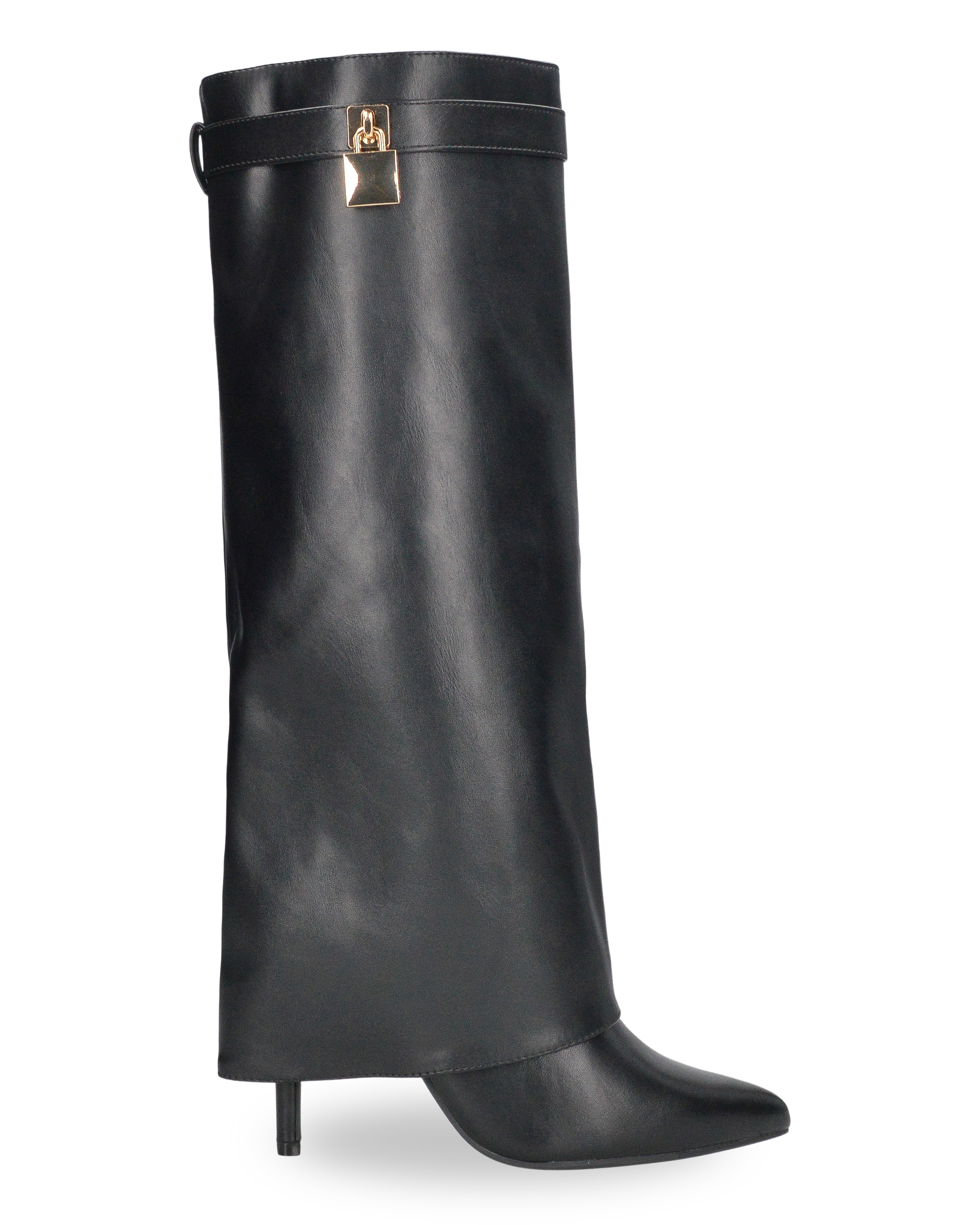 LALITA - stivali alti neri con risvolto e decorazione dorata