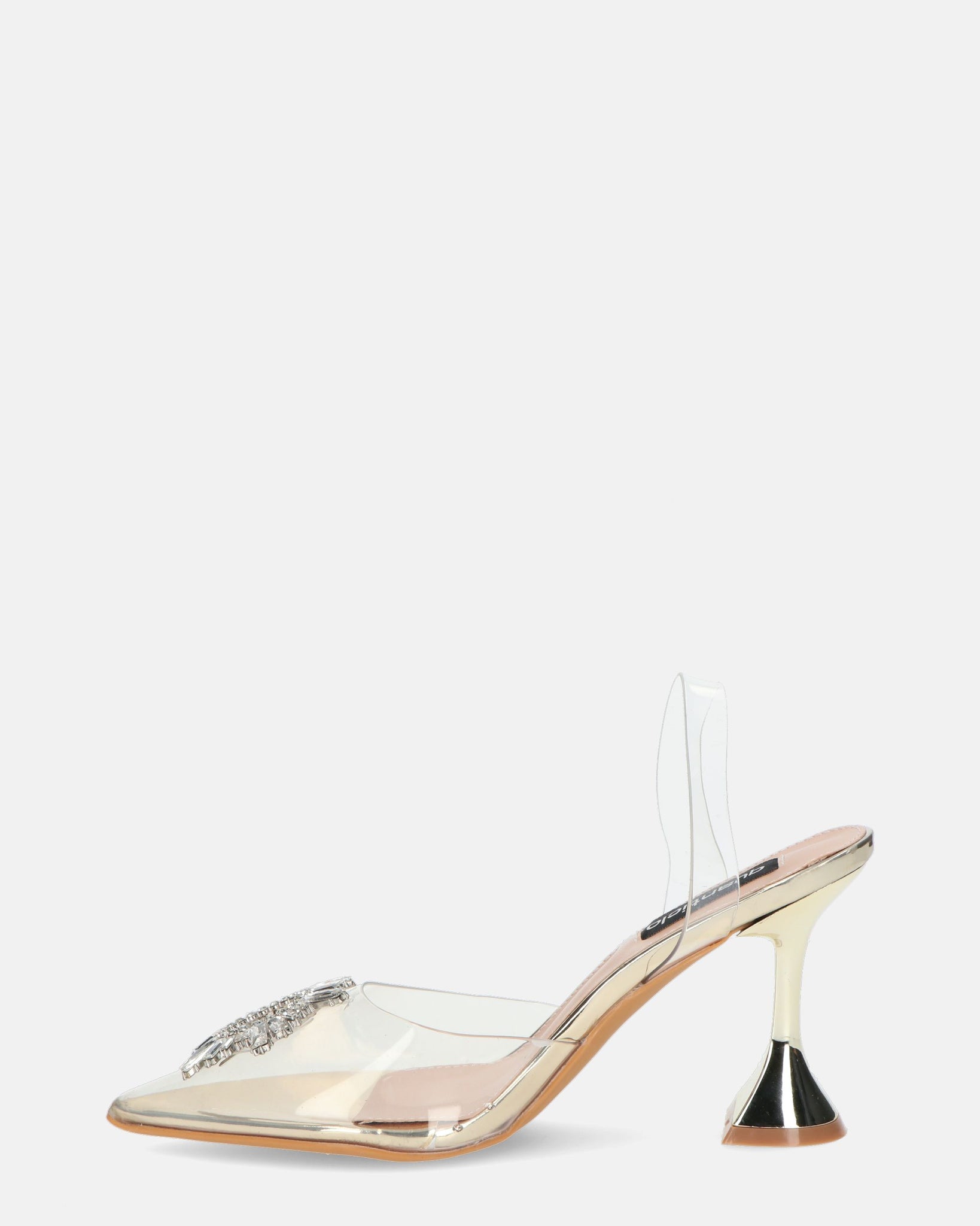KENAN - scarpe in perspex oro con decorazione di gemme in punta